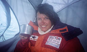 В 1997 году она встретилась с Далай Ламой, который был очарован прекрасной, энергичной девушкой и подписал ей тибетский флаг. Она пропозировала с этим флагом на вершине Гашербрума II. Он стал ее последним восьмитысячником.