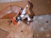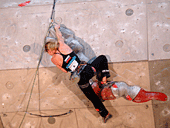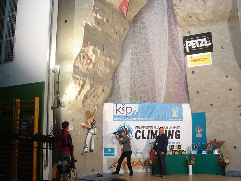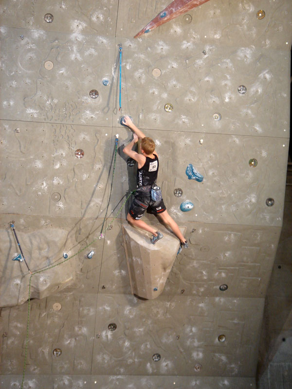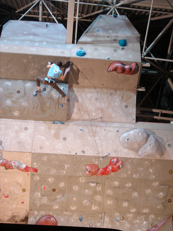 На финалах весь зал был заполнен, куча телекамер и журналистов. В женском финале неповторима была Майя Видмар. Лезть трассу, когда тебе орет толпа зрителей при каждом перехвате, думаю, нелегко. Но она с этим справилась - она 1я. Остальные девочки, которые упали в одинаковых местах, распределились по полуфиналу. Мужчин подбадривали с первых перехватов, так как трасса предельно сложная. Мальчик из Австрии, Якоб Шуберт (90 года), маленького роста - смело доставал далекие перехваты. Флавио Креспи может встать на какой нибудь фигне и расслабиться, как будто он на земле стоит. Было заметно, что Йорг Верховен перетрясся уже на середине трассы. Седрик Лашат всегда отличался тем, что очень терпит на трассе, и это видно. Лезет с надутыми щеками и спускается весь красный и мокрый) Но его терпению стоит поучиться.