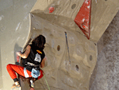 Тренажёр с большим количеством рельефов и углов - про это надо помнить и думать, как их применять. В полуфинале можно было постоять в одном месте, где-то в середине трассы, остальное - грести... за 3 перехвата до финиша - большой плохой пассив, он высасывал все оставшиеся силы:), с него надо было поскорее уходить. Анжела Айтер взяла его двумя руками и так долго висела! Наверное, пыталась получше его взять... но не смогла сделать ничего дальше, она не попала в финал. У меня следующий зацеп с минусом (10 место), не хватило 1го перехвата до финала.