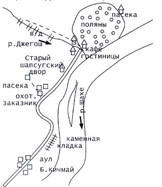 1 до 10 метров. Природную композицию дополняет мохнатый самшитовый лес справа и слева от ручья. У каскада «33 водопада» есть своя адыгская легенда, которую вам с удовольствием расскажут местные жители или экскурсоводы. Справа от водопадов - поляны, летом утопающие в зелени садов, здесь же есть еще одна пасека. Дальше по реке Шахе можно пройти только заросшими горными тропами до Солох-аула, но это не входит в данный маршрут. Кстати, у водопадов находится островок цивилизации: рынок с большим выбором домашних вин и напитков, шашлычная и ресторан. Места для отдыха и обеда предостаточно. Можно заночевать, если вы располагаете временем и деньгами.