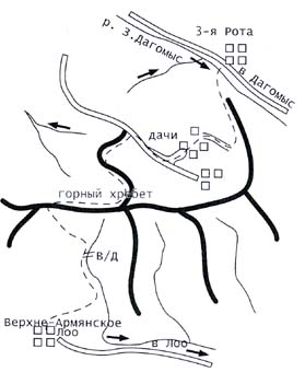 По нему идет хорошо набитая тропа. Идем направо. В лесу преобладают грабы, каштаны, буки. Мощные стволы дубов причудливо оплетены лианами. Осенью толстый слой листьев на земле создает впечатление, что идешь по мягкому ковру. С гребня открывается прекрасный вид на море, с севера вид ограничивает хребет, идущий вдоль дороги Дагомыс - Солохаул. Дойдя до развилки, идем по любой из тропинок, но по левой быстрее доберетесь до широкой лесовозной дороги (еще 30 минут). Повернуть направо, и через 20 минут дорога приведет к дачному поселку. Мимо дач спускаемся до родника, где можно сделать привал и пообедать. Идем дальше по этой же дороге. В конце дачного поселка отыскиваем тропу, спускающуюся круто вниз. С тропы не сворачивать, идти только по гребню. Примерно через 40 минут от конца дачного поселка замелькают внизу справа по ходу движения белые домики маленького поселка 3-я Рота, послышится шум проезжающих по шоссе машин. По гребню спускаемся к ручью, выбирая наиболее удобный и нескользкий путь. По камням переходим через ручей и поднимаемся вверх на трассу. Это и есть конец маршрута - поселок 3-я Рота. Рядом автобусная остановка, откуда можно добраться рейсовым автобусом №108 или №109 до Дагомыса. Общая протяженность маршрута около 9 км пешеходной части. Причем важно не пропустить начало подъема от ручья. Смотреть внимательно за марками на деревьях! В пути не оставляйте мусор и не жгите костры!