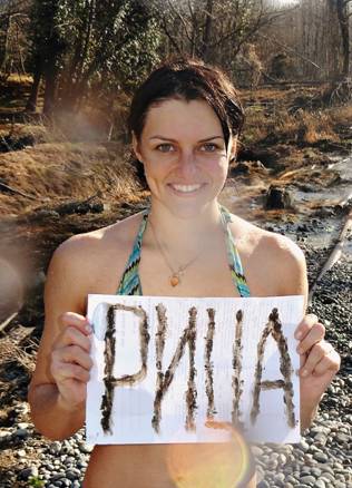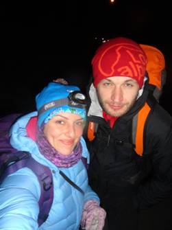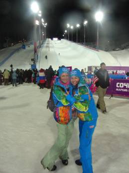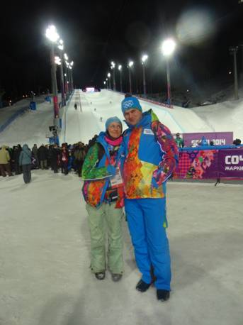 Мои замечательные волонтеры из Волгограда: Маринка и Саша, за нами трасса хаф-пайпа.