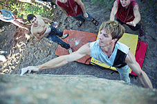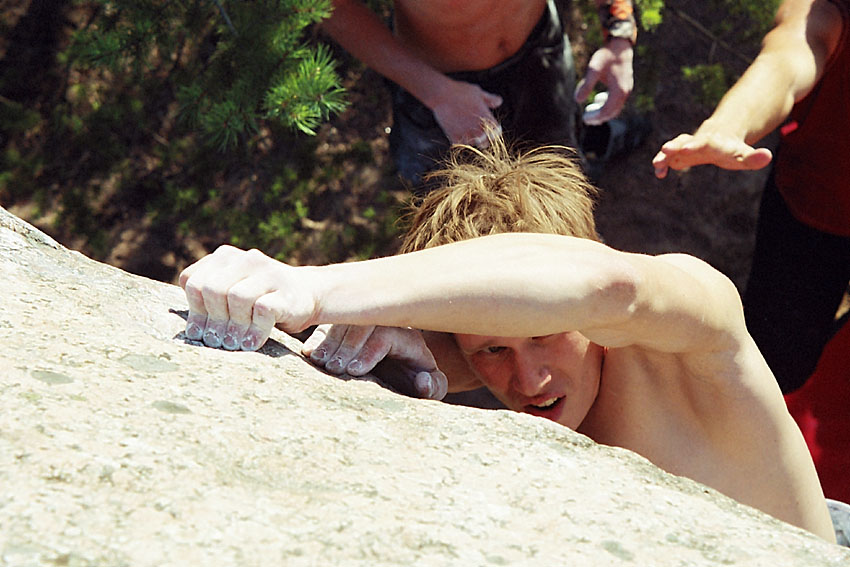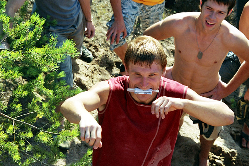 Автобус с Питерцами ждал москвичей. Нет скорее Москвичей, с большой буквы, потому что много. Дождался: Вано, Дрон и я, чем не много? =) Как приехали, сразу всех зарегистрировавшихся одели в симпатиШные майки и жетон с номером. Озвучили таинственную легенду, и монстры разбрелись лазить свои нереальные «проекты». А мы с девчонками (с Наташей и Надей) поползли лазить что пролезется. А пролезлось как-то совсем не много… после фиаско с “Blue Boy” мы с Наташей начали подумывать завязать со скалолазанием… Не пролезть 5А… пора на пенсию… Но наши упаднические настроения были развеяны на следующий день. Видимо пиво с кальяном помогло. Легко дались Барашки и другие трассы. В завершение пролезла Hookah, и только-только начало что-то получаться – и пора уезжать. Но мы все равно много успели! И полазили и пообщались и искупались (спасибо Стасу что довез!) и просто отдохнули.