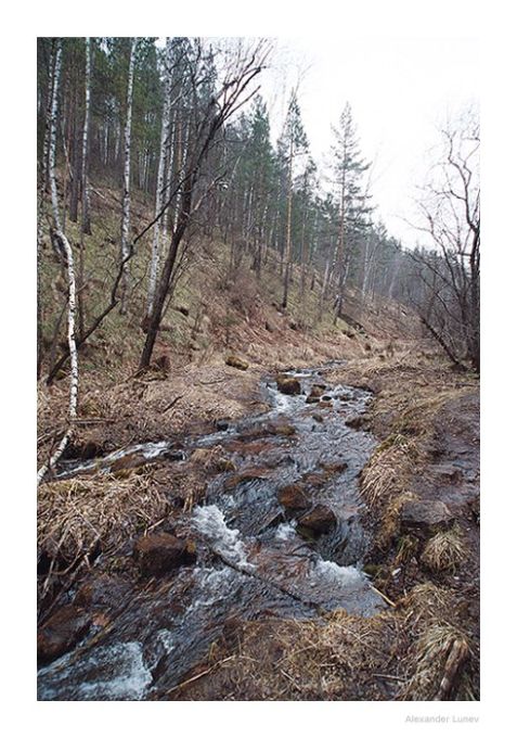 вниз, к ручью Моховому. Еще несколько сот метров после спуска - и все,