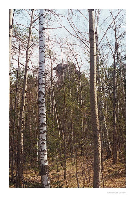 по лесу - и все, ты под Такмаком. Под скалой - крутой спуск вниз и каменная