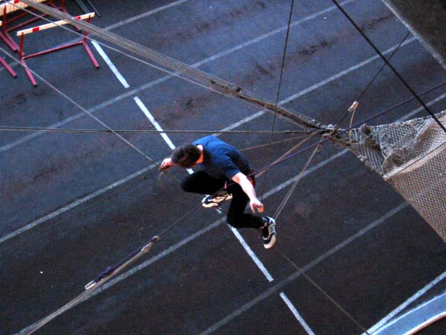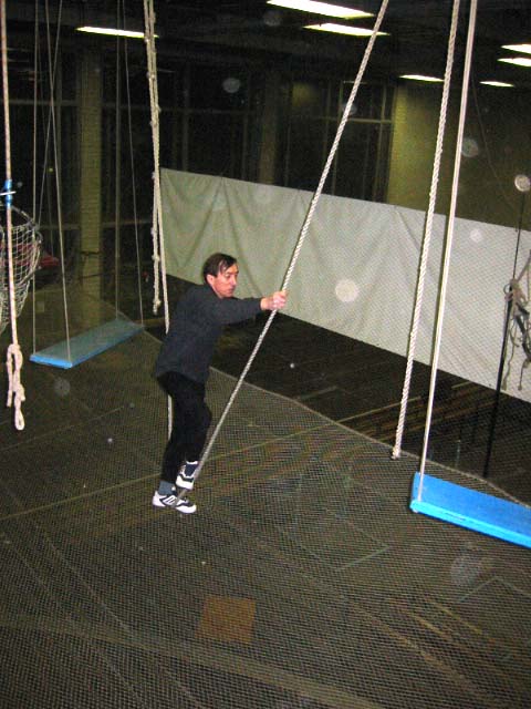 полосой препятствий под самым потолком. Хождение по тросику чередовалось