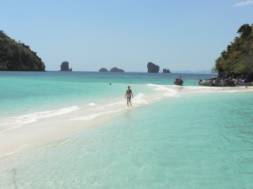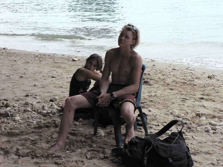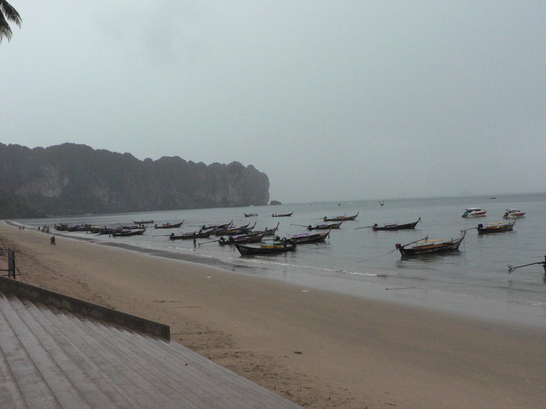 Наконец выходим на станции, местный мальчик провожает до автобусной остановки. Тетка на билетах: Куда едем? – Туда-то? – вот билеты! – сидим ждем, сказали, что как автобус подадут, скажут. Засовывают в автобус. Едем, едем, едем… проводник в автобусе – выходите ваша остановка… выходим…где мы? Приехали мы не в то место куда надо, продали билеты не на тот автобус. Наша карта на английском и их карта на тайском… они не то чтобы не похожи… общее конечно что-то есть… но они РАЗНЫЕ! Опять автобус, опять едем…приехали в нужный город! Ура! Краби привет! До нашего пляжа, после некоторых мытарств, на лодке подплываем уже в хороший такой совсем не зимний тропический дождь. Все мокрые до нитки, но мы на месте. От сердца отлегло.