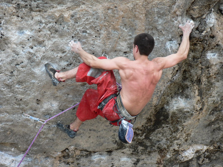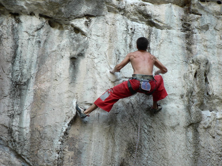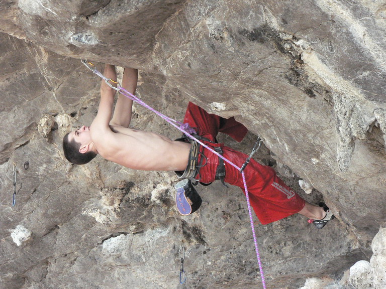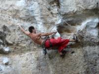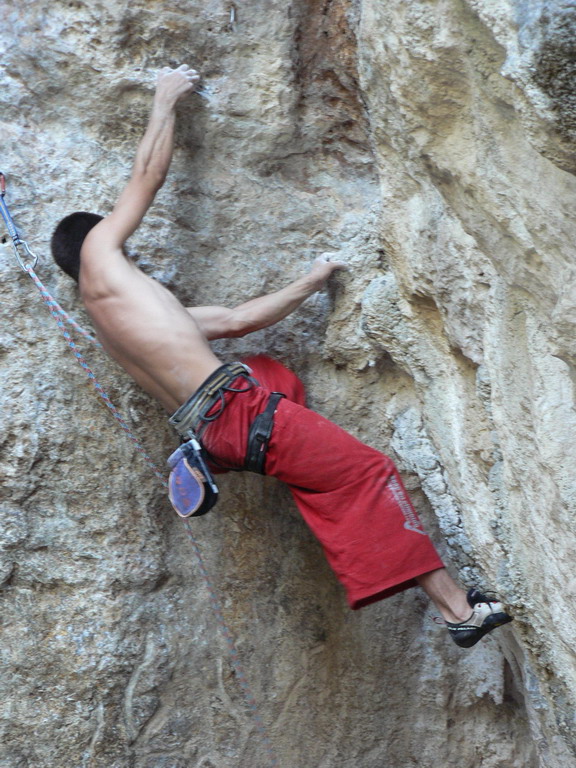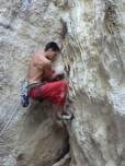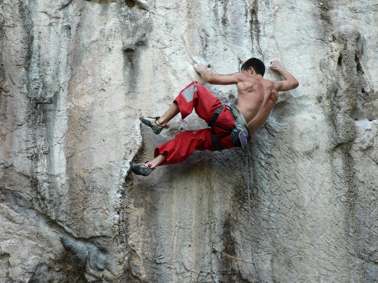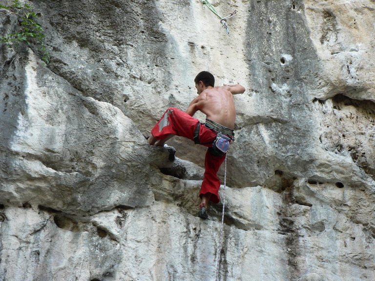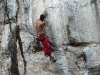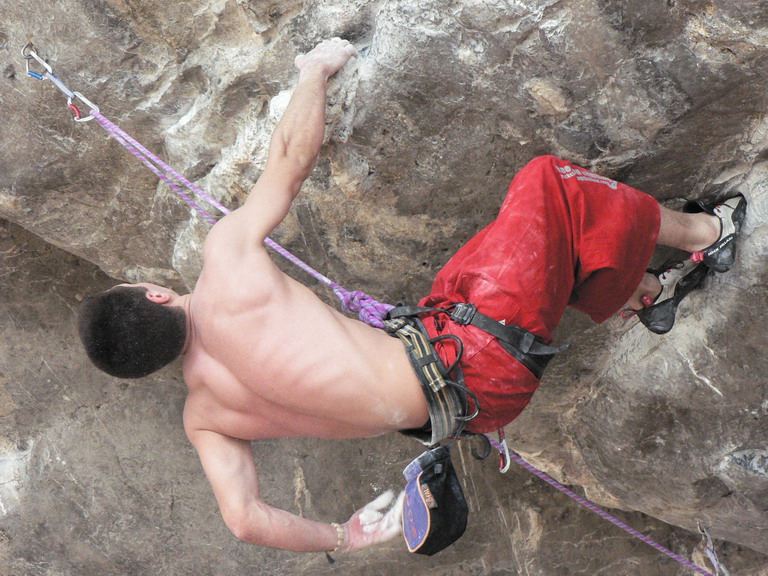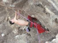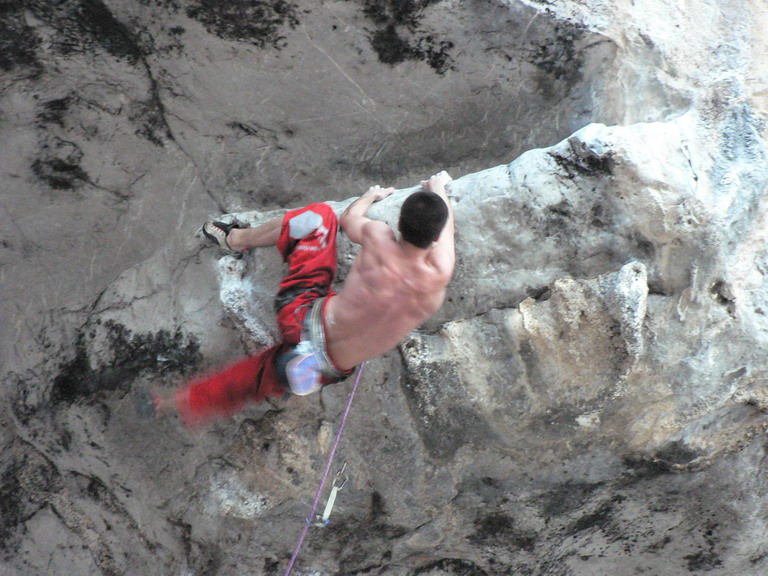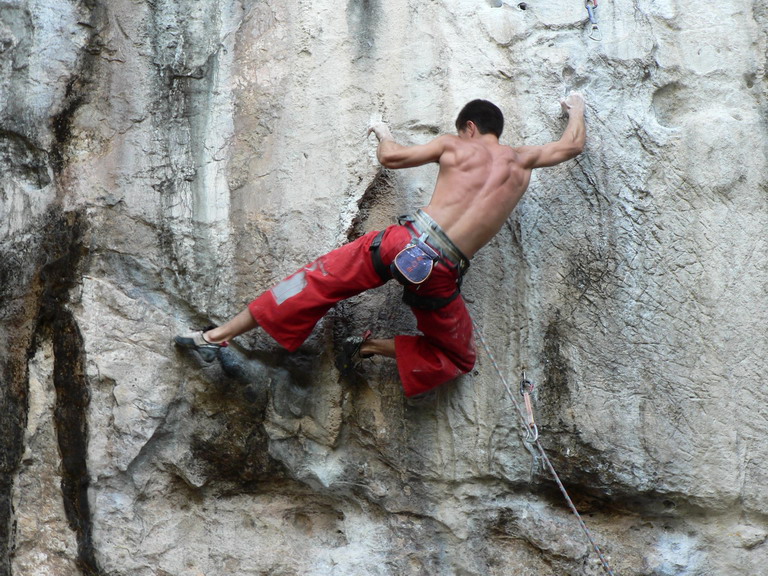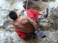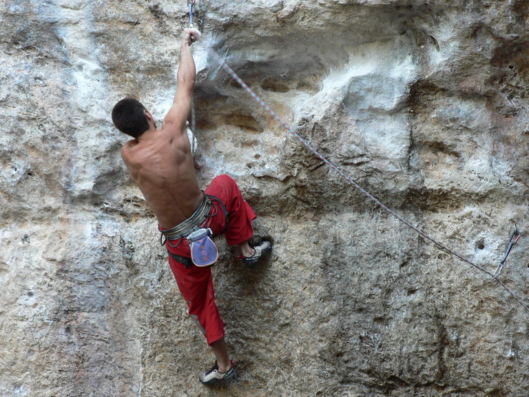 И опять к первой тренировке. Вторая трасса – 6с+. 30 метров нависания по ручкам в середине которого Илья понял что такое акклиматизация, с чем это едят, и что она будет долгой, и чуть не выплюнул свои легкие. После чего был сделан вывод, что при выборе трасс главным критерием будет их высота – не более 20ти метров. После еще парочек 6с меняем сектор в поиске чего-нибудь посложнее.