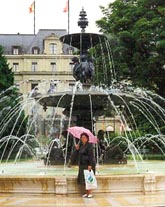 новые цветы. В центре этого небольшого парка фонтан, а чуть поодаль, по
