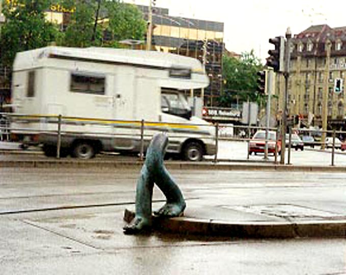 со скульптурной группой. Подошли к Кафедральному собору. Перед ним свинцовая