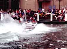 водоемом посередине. По водоему с грохотом носилась моторная лодка, таскающая