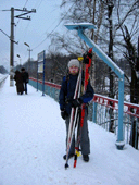 переодеться и собрать лыжи. Покупка билетов, обтирание снегом, переодевание