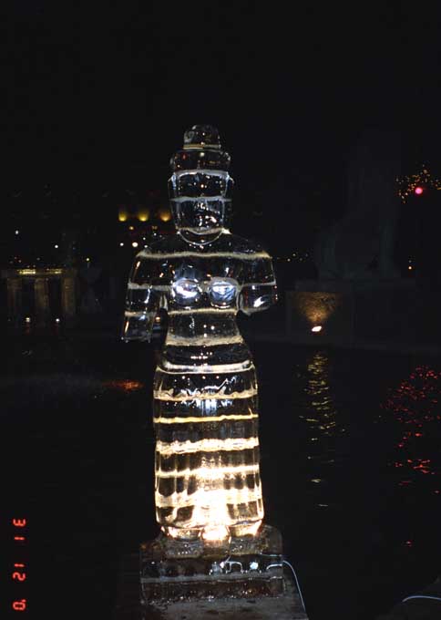 От огромных ледяных статуй в тридцатиградусную жару шел пар, но они стойко