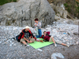 Расстелив пенки у самых камней, разложив еду и передавая бутылку массандры