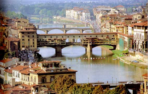 остановившись у дворца Питти, по крытому мосту Понте Веккьо через р.Арно