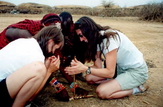 дыма подсовывать туда высушенный навоз. Двоим масаям это удалось, мы же