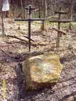 Камень оказался рыжим от мха валуном, 2 креста рядом... Послание от таких