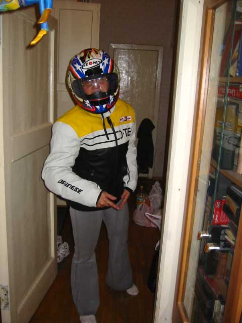 надел на нее и шлем и во всем этом сфотографировал. Визуально мотоциклист