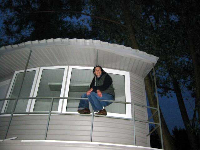 площадки, прошли мимо трамплина, сели на полуразрушенные деревянные трибуны,
