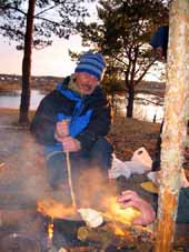 превратилась в лед, река у самого берега замерзла. Мы разожгли костер и