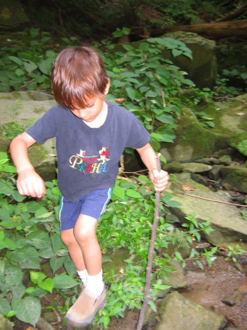 идти по кромке ручья и прыгать с камешка на камешек, не замачивая ног.