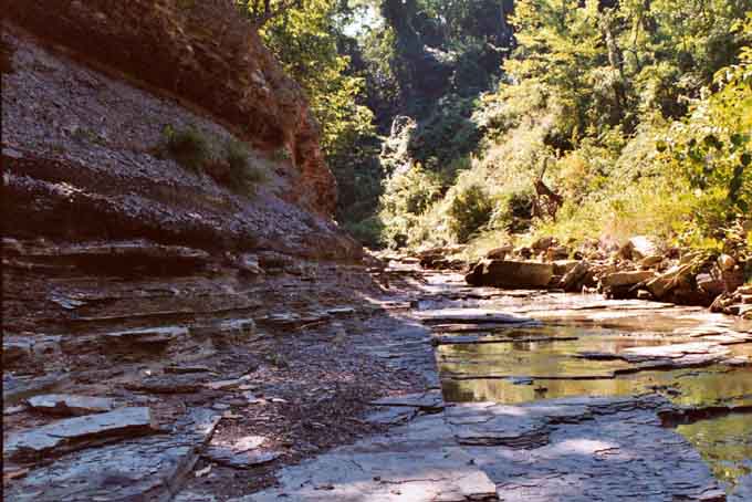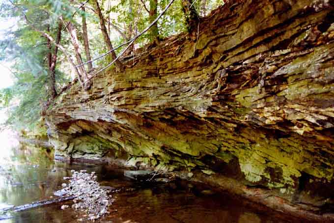 девонские отложения – сланец и песчанник. В них можно встретить окаменелые