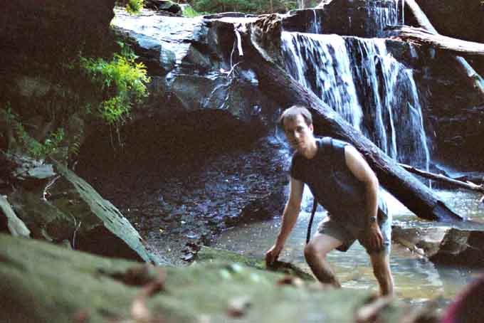 лесенку. Я по ней слез и сфотографировался на фоне падающей воды.