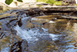 время дождя вода в ручье резко поднимается. Ручеек превращается в бурный