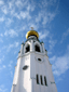 монастыря. Башню монастыря, отражающуюся в спокойной воде, и металлический