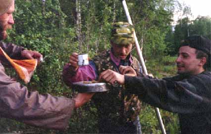 голосом протянул: "А, туристы!" И сел с нами пить водку. Потом