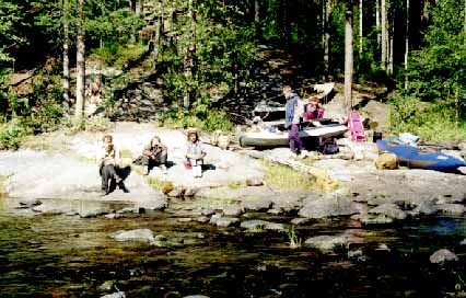 перетаскиваем вещи. Неожиданно встречаем еще одну группу из двух байдарок.