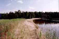 погода, песчаный берег, теплая вода на прибрежном мелководье, обилие черники,