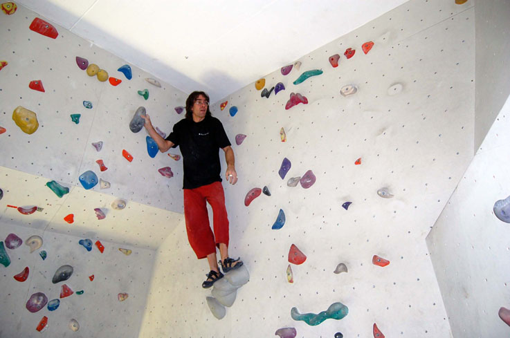 Трассы интересные и техничные. Хотя жестко соблюдается правило – сначала простое лазание, затем потяжелее, а в конце – ключ. Размявшись на чудесных шестерках с большими ручками, пролезаю 7b+/7c on-sight. В другом секторе, минут 30 помучавшись, делаю русский проект первопрохождения трассы только по одному рельефу через две огромные сосульки. Категория примерно 7с. Маршрут очень техничный и похож на реальные скалы. Полазив 2 дня, и посмотрев прогноз по Европе, понимаем, что придется ехать сразу в Испанию. По дороге заезжаем еще к одним знакомым, лазаем болдринг – техничный и интересный. Скалодром еще больше чем в Мюнхене. Отто, который показывает трассы, фанат лазания в Фонтенбло, и в трассах явно прослеживается влияние этого необычного района. В общем, после нескольких часов лазания меня с трудом «уносят» оттуда.