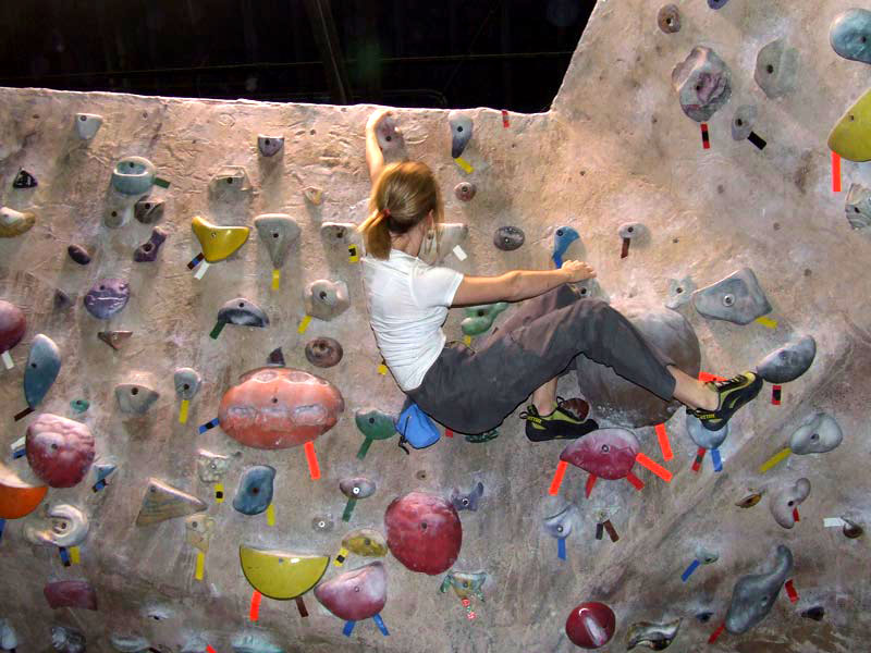 Вот уже почти 5 месяцев мы обитаем в городе Торонто, что в Канаде, и лазим на местном скалодроме - "Toronto Climbing Academy". Скалодром находится в отдельном здании, которое я охарактеризовал бы как ангар. По моим ощущениям, суммарная площадь стен больше, чем в ДДС, не говоря уже про Скала-Сити и Экстрим. Высота около 10 метров. Две стены с большим нависанием, только для нижней страховки, на остальных есть веревки для верхней страховки и, где-то в половине случаев, провешены оттяжки для нижней. Есть довольно большой кусок стен около трех метров высотой для болдеринга и "cave" - пещера с почти горизонтальным потолком (около 20 градусов).