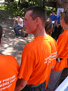 Во-первых, фирменные майки оказались сочного оранжевого цвета. Поскольку в них вскоре оказались облачены большинство обитателей Цея - от спортсменов до работниц кухни – событие получило название «оранжевой революции».