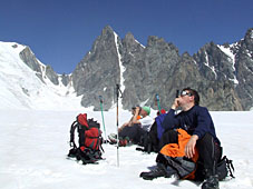 Краснодарцам повезло с погодой и они успели сходить несколько акклиматизационных маршрутов, в том числе на Уилпату (5 A ), a вот красноярцы из-за непогоды первое время довольствовались в основном скальными тренировками. Но как только погода наладилась, совершили восхождения на Адай-хох (3А) и Уилпату (5Б).