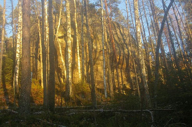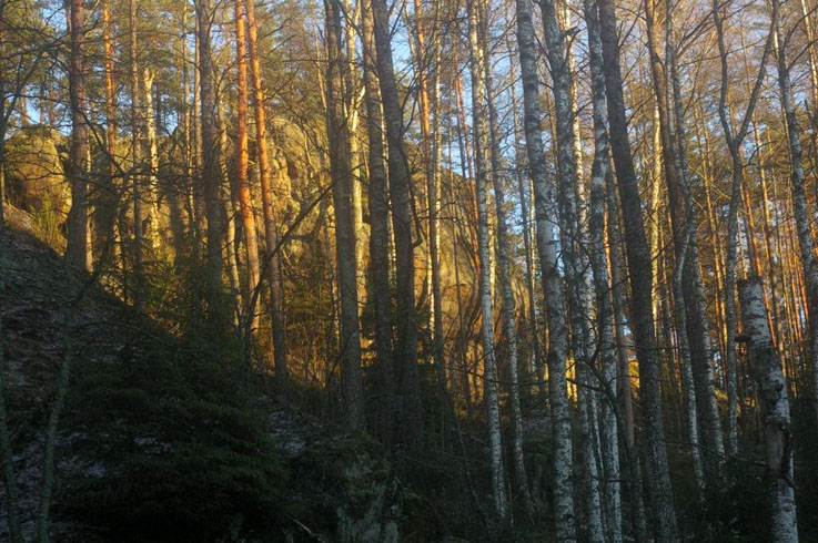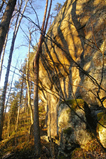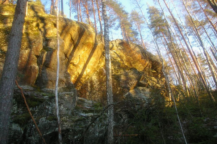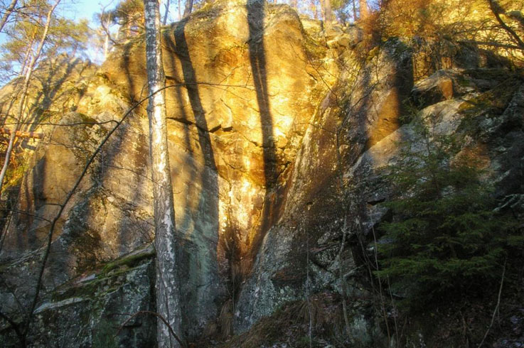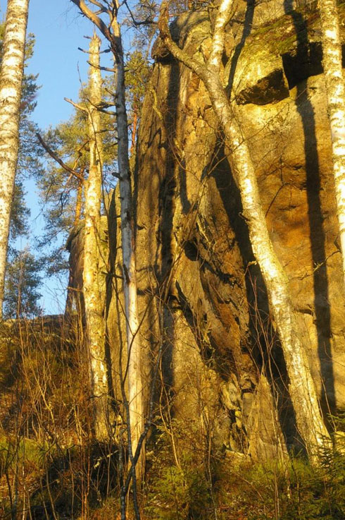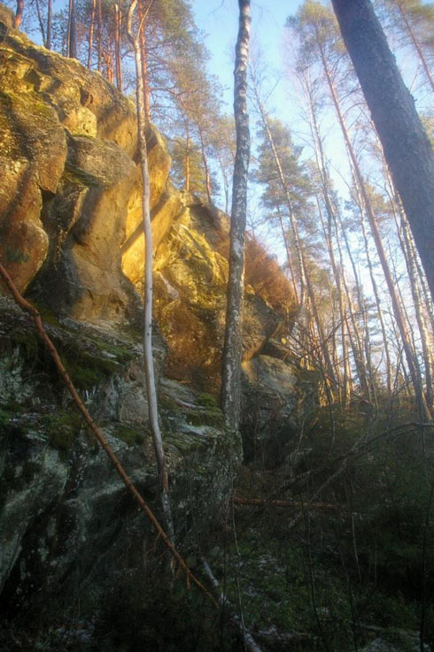 обледенением скалы, также не получить сделать качественные фоты из-за сгущавшейся темноты. Минусы: в непосредственной близости ведутся активные лесозаготовки; заболоченный ручей вдоль основания массива.