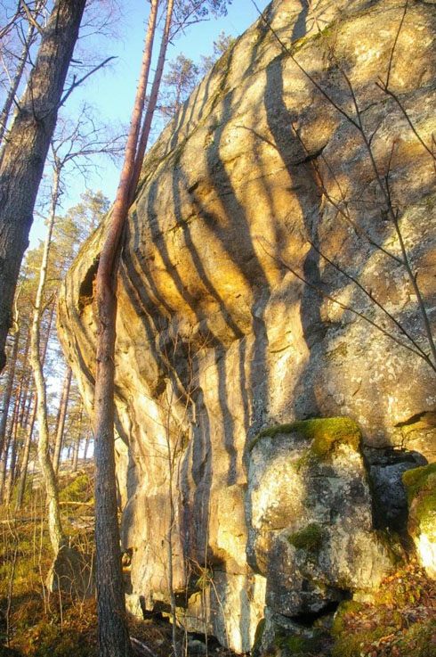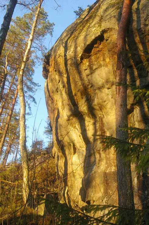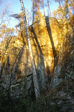 камнем. Протяженность массива пригодного для лазания около 100 метров. К сожалению, разглядеть рельеф не удалось в связи с сильным