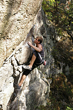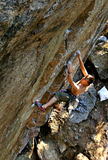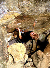 Константин Савельев. ”Годзилла”, 8a .Короткий боулдеринговый мр-т в основном по искусственным зацепам на сильном нависании. арч-Кая, Крым, Украина. 2004г. Вылез |