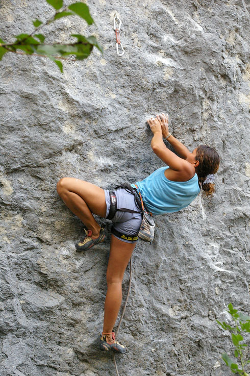 Людмила Бадалян. ”Мозг”,7в (одна из первых трасс, появившихся на Треугольном).Озеро Треугольное, основной массив, сектор”А”. Карелия. Июль 2006г. (Маршрут 20м, внизу небольшой карниз, далее вертикальная часть с преимущественно маленькими активными зацепами и местами для отдыха). Первая попытка. Не вылезла… |