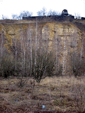 Огромный котлован с березками внизу. Дальняя стена представляла собой