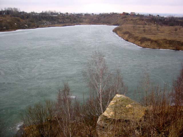Озеро (еще покрытое льдом, слегка подтаявшим у берега) казалось чистым