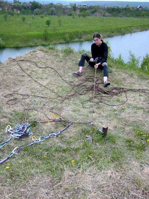 верхнюю страховку. Страховать приходилось, стоя сверху.