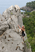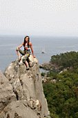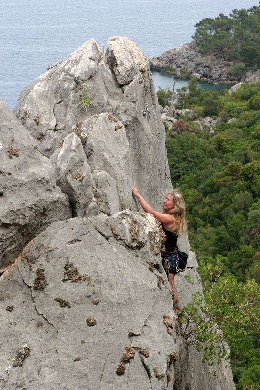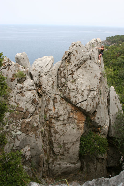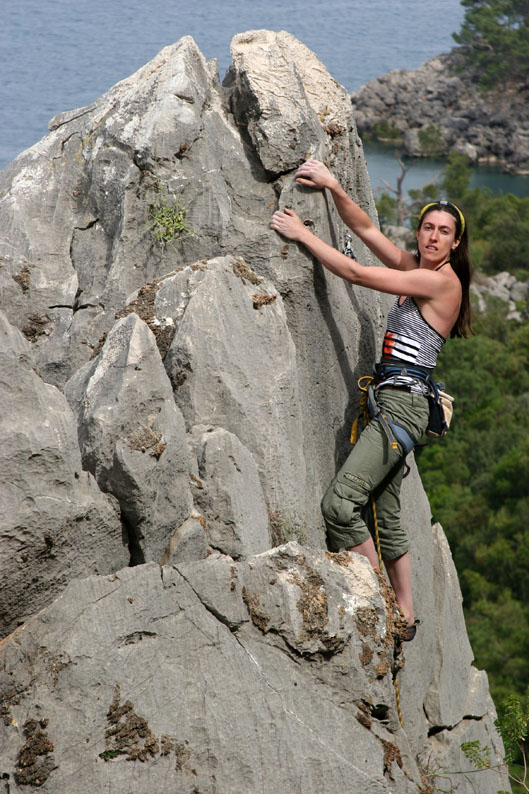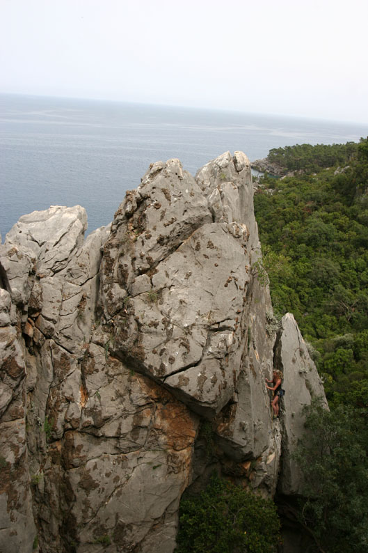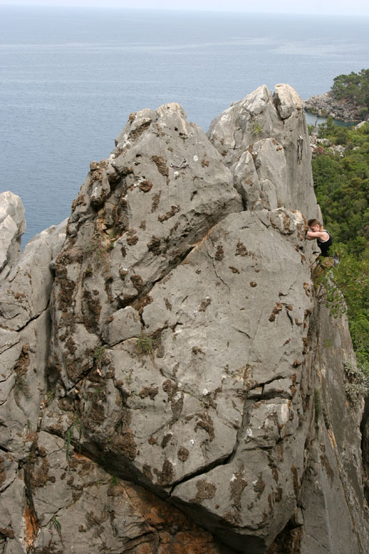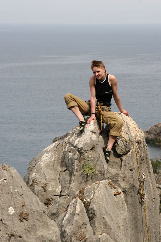 Мы эффектно позируем на какой-то 5а на фоне моря