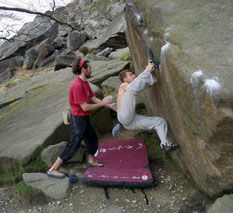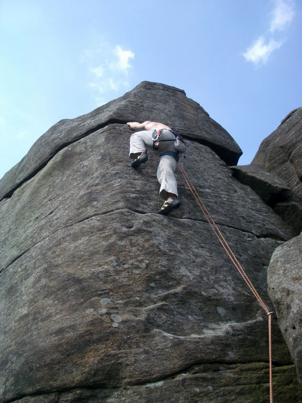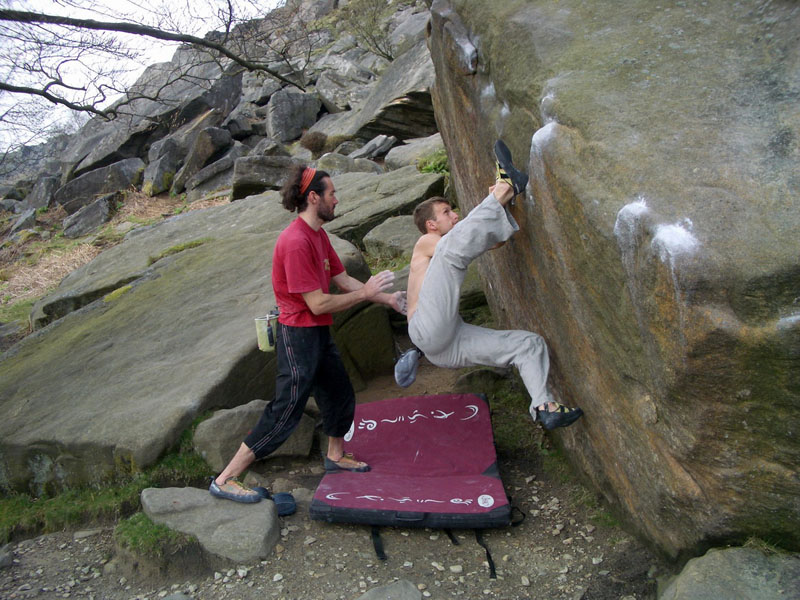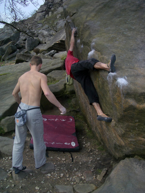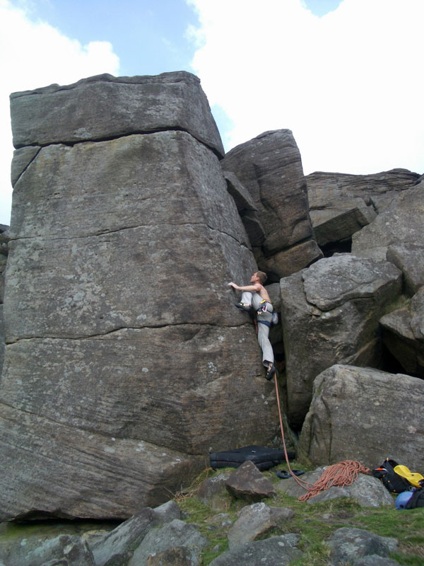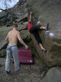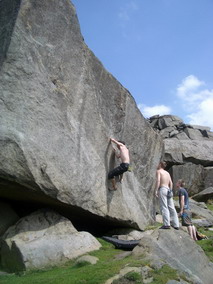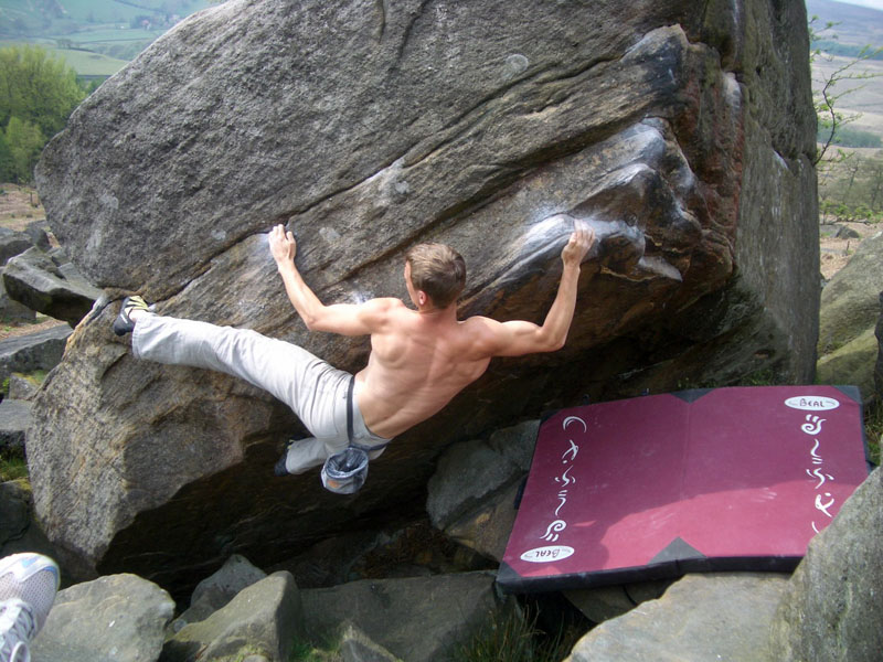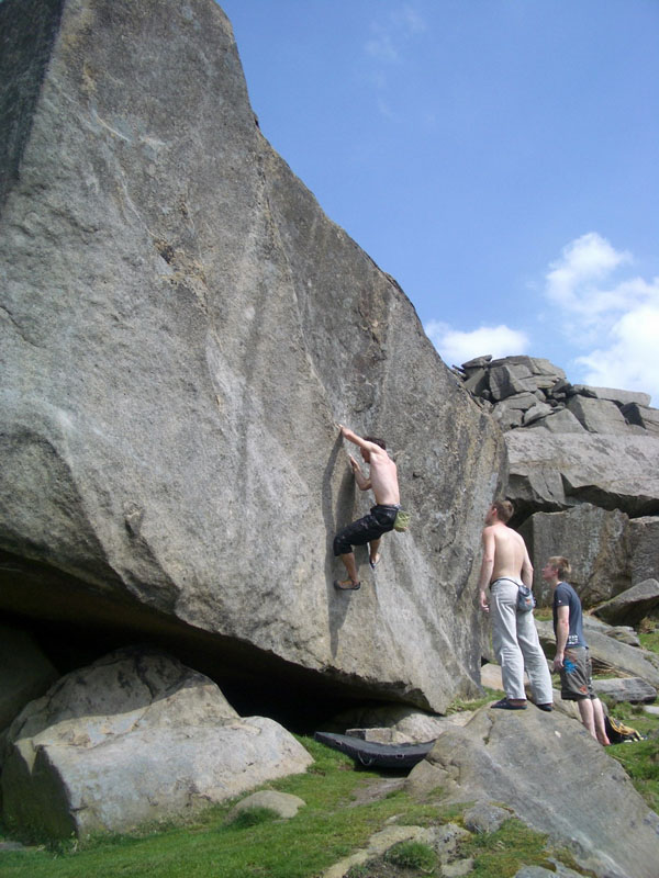 Вечерний заход более плодотворный, залезаю The Steep Traverse V5(6b) франц. 6С, совершаю головокружительный полет спиной вперед на Deliverance V8(6c -7a). Прихрамывая и держась за правую половину задницы, возвращаемся для съемки ролика на Steep Traverse. 10 мая день отъезда, утром собираем шмотки, сдаем коттедж и едем лазить. Залезаю приглянувшийся ранее карниз, два клевых боулдеринга V5(6b) франц. 6C и несложный, но будоражащий кровь хайболл. Время подходит к четырем, нам пора рулить в Лондон.