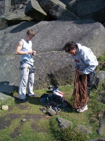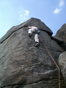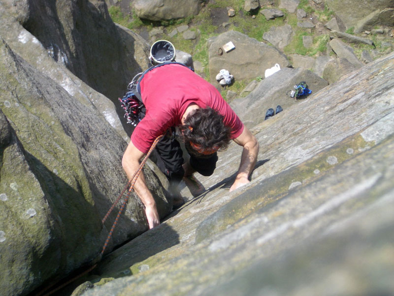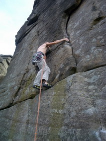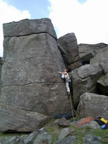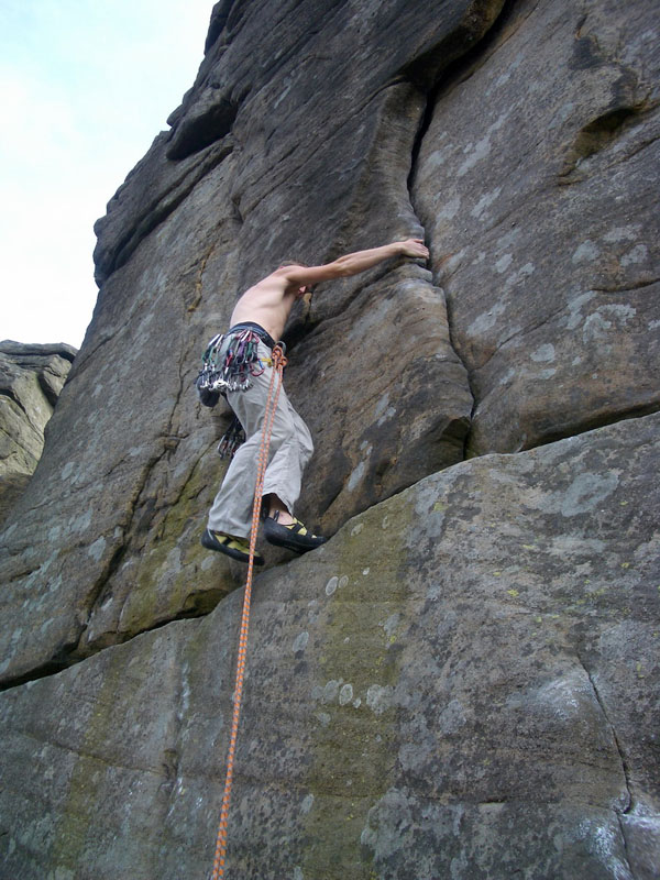 Два дня дождливо – экскурсионной программы скрашиваю пробежкой траверса холмов Lose Hill и Mom Tor, наконец-то дождь заканчивается, и вот мы идем на скалы. Тут же совершаю тактическую ошибку - накидываюсь на боулдеринги, коих тут несметное количество. Уже к середине дня знакомство со знаменитым гранитом отдается болью в стертых пальцах. Большинство зацепок пассивные, ладони по ним ползут. Стертые подушечки пальцев мокнут еще сильнее и тоже ползут. Сссс... сил нет. |