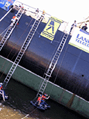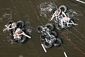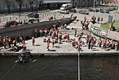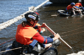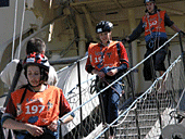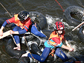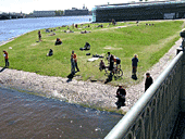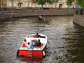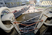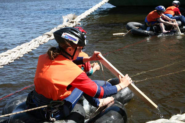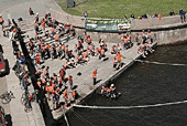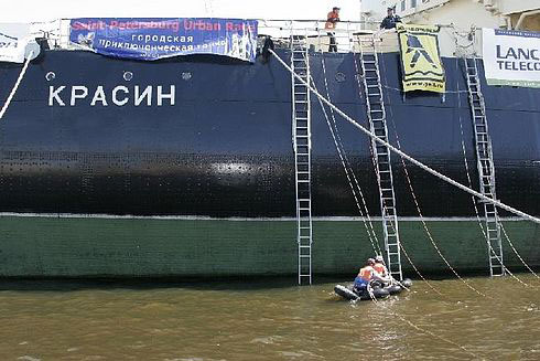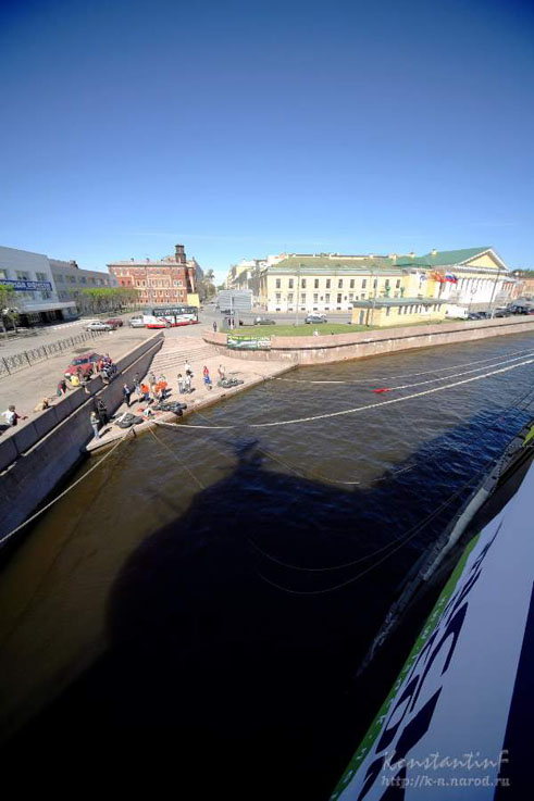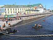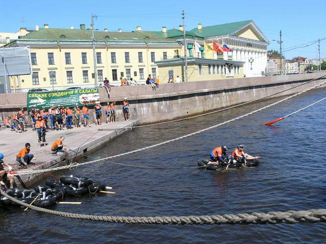 Первый этап, который нам встретился сразу удивил, подбегая к ледоколу Красин (ныне музейный экспонат) мы увидели участников, отчаянно гребущих на надувных плотах и берущих на абордаж дедушку арктического флота. Долго не раздумывая, прыгаем в свободный плот и усиленно гребем дощечками, заменившими нам весла и заодно, тут же открываем купальный сезон (несмотря на жару, в Неве еще холодно!).