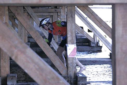 Попав на борт необходимо было взять КП – электронная отметка на мачте судна, после чего, долго не раздумывая бегом на берег, на ходу снимая страховочные системы. Весь этап преодолевали босиком, очень уж не хотелось мочить кроссовки, в них еще бежать и бежать, впереди несколько километров треккинга.