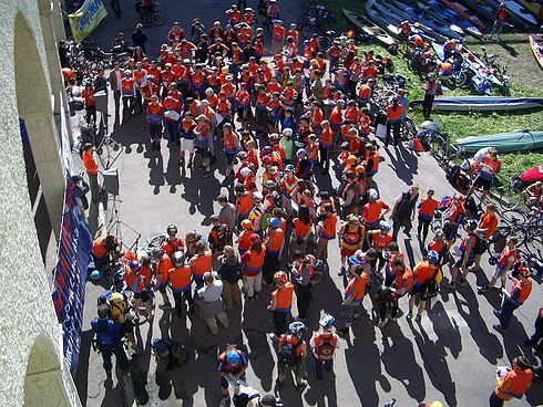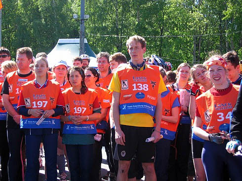 Поезд наш приходил утром в день старта, поэтому мчались на Крестовский остров быстро. Приехав на место, нам открылась картина, похожая на муравейник: суетившиеся участники готовились к началу гонки, кто-то готовил байдарки, кто-то велосипеды, ролики, а кто-то энергетические напитки.