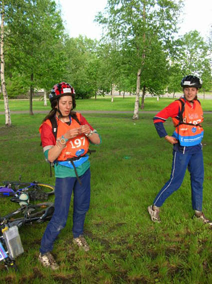 После, возвращаемся к месту старта, садимся на велосипеды (начало велоориентирования, самого длинного этапа гонки) и снова в город. Аппетитные сэндвичи, которые участникам на обед предоставили спонсоры соревнований, остались нами не тронуты, кушать совсем не хотелось, несмотря на то, что шел уже пятый час гонки, да и расслабляться совсем не стоило:) .